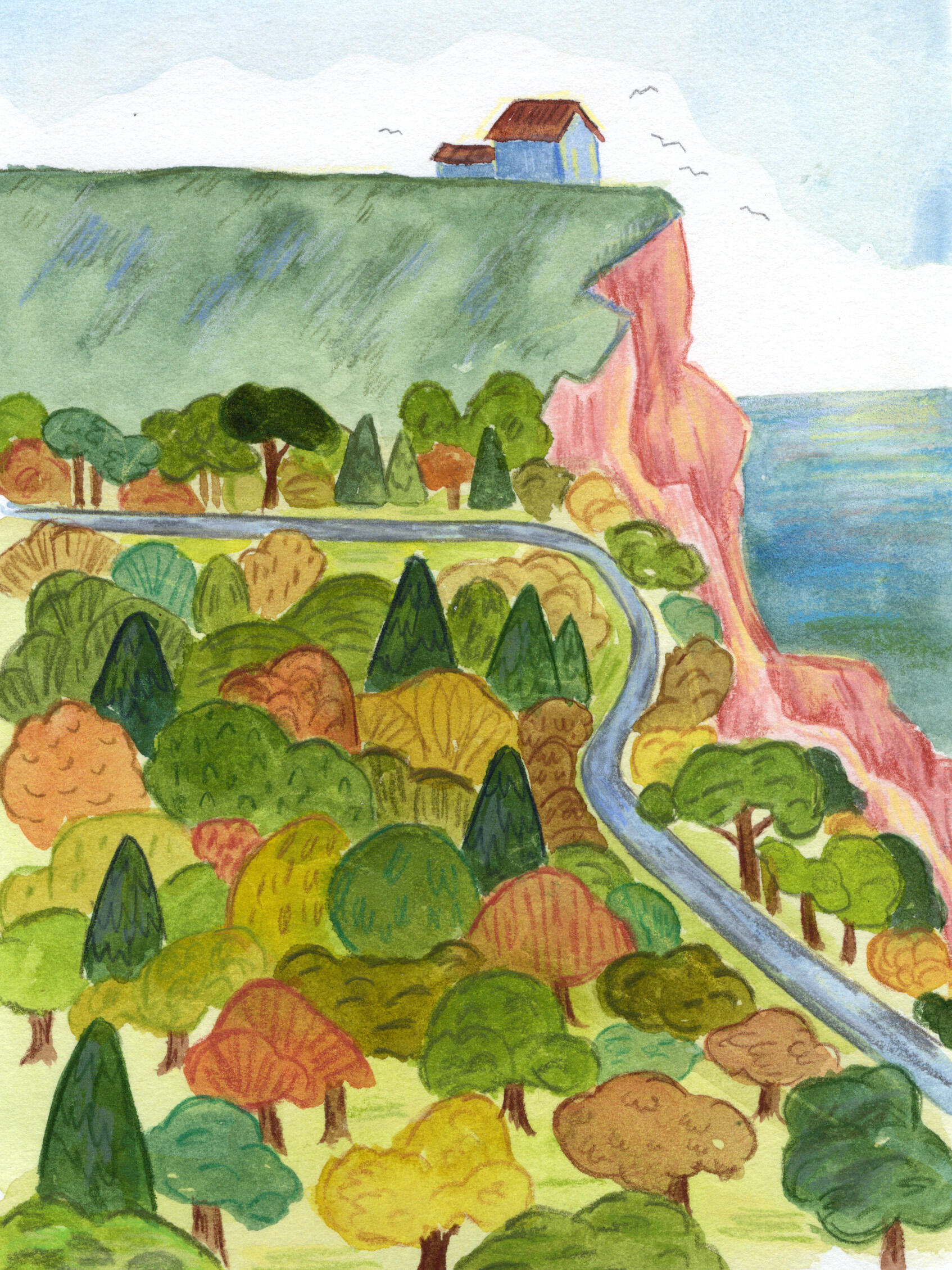 Watercolor, Gouache, Colored Pencil, Wax Pastel
